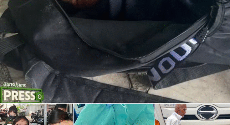 คุณลุงศักดิ์ชินบุตร ผู้ไปพบเหตุการณ์ เล่าด้วยน้ำเสียงสะเทือนใจว่า ขณะเดินเก็บขวดไปขายบริเวณสะพานข้ามคลองสี่ศอก สังเกตเห็นกระเป๋าสีดำวางอยู่ที่พื้นหน้ารถบรรทุก ตอนแรกคิดว่าเป็นขยะ แต่พอเห็นกระเป๋าเปิดแง้มอยู่ก็อดสงสัยไม่ได้ เดินเข้าไปดูใกล้ ๆ กลับต้องผงะเพราะเห็นหัวเด็กเล็กโผล่ออกมา ลุงรีบตะโกนเรียกเพื่อนบ้านให้มาช่วยพาเด็กมาพักที่หน้าบ้าน แล้วรีบโทรแจ้งเจ้าหน้าที่ทันที