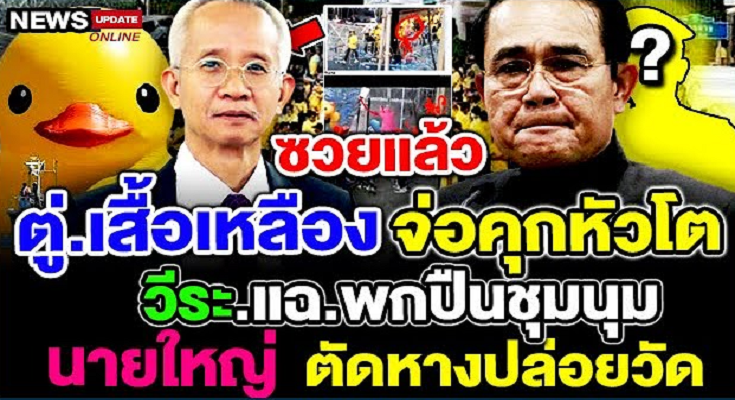 ดอน อย่าง ได้ ประกาศ ยก ระดับ การ ชุมนุม ใหญ่ อีก ครั้ง ใน วัน ที่ 25 พฤศจิกายน ไป ที่ หน้า สำนัก งาน ทรัพย์ สิน พระ มหากษัตริย์ จาก นั้น จะ มี การ ชุมนุม ต่อ เนื่อง ทุก วัน จน กว่า พล เอก ประยุทธ์ จะ ลา ออก นอก จาก นี้ นะ ครับ ยัง มี ความ เคลื่อน ไหว ที่ เกิด ขึ้น เยาวชน เสื้อ เหลือง ด่า ประยุทธ์ ประวิตร วิทย์ โดน รุม ประชาทัณฑ์ วัน ที่ 17 พฤศจิกายน 6 3 นะ ครับ มี ราย งาน ข่าว ว่า เมื่อ เวลา 12:30 ที่ บริเวณ แยก เก็บ กาย ขณะ ที่ กลุ่ม ผู้ ชุมนุม เสื้อ เหลือง ฝาก หลัก รอ นาย แพทย์ วรงค์ เดช กิจ วิกรม แกน นำ