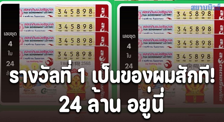 ล่าสุด จากการตรวจสอบโลกออนไลน์พบว่า ผู้ใช้เฟซบุ๊กรายหนึ่งชื่อ Max Tanapat ได้โพสต์ภาพลอตเตอรี่รางวัลที่ 1 พร้อมระบุข้อความว่า รางวัลที่1 เป็นของผมสักที ที่ผมเป็นหนี้ใครจะใช้ให้ครบทุกคนเลยครับ โดยผู้โพสต์ถูกรางวัลที่ 1 จำนวน 4 ใบ เป็นเงิน 24 ล้านบาท