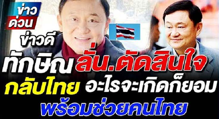 นั้น ไม่ เห็น มี วี่แวว ความ ชัด เจน ราย ได้ ส่วน การ ออก มาระ บุ เรื่อง การ กลับ ประเทศ ของ คุณ ทักษิณ ใช้ วิธี นี้ ออด อ้อน แฟน คลับ คน เสื้อ แดง ผ่าน การ โฟน อิน ให้ ช่วย พา ตัว เอง กลับ มา บ้าน ตั้ง แต่ กลุ่ม นปช. ออก มา ขับ ไล่ รัฐบาล อภิสิทธิ์ แล้ว ครั้ง หนึ่ง คุณ ทักษิณ โฟน อิน เข้า มา ที่ งาน พบ ปะ สังสรรค์ คน เสื้อ แดง ภาค อีสาน 20 จังหวัด ที่ สุรินทร์ ช่วง ปี 55 ว่า ถ้า ผม กลับ มา บ้าน ต้อง กลับ มา อย่าง เท่ ๆ แล้ว จะ บอก ว่า จะ กลับ มา แบบ ไหน ถึง จะ เรียก ว่า เท่ห์ จน เมื่อ มา เป็น โท นี่ ก็ พูด ย้ำ อีก ครั้ง ว่า ยืน ยัน กับ แน่