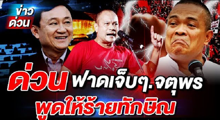 ถึง นายก ทักษิณ ชินวัตร อดีต นายก รัฐมนตรี ใน ทาง ไม่ ดี ว่า ตน คิด ว่า ไม่ ได้ ส่ง ผล กระทบ อะไร กับ ฐาน เสียง ของ พรรค เพื่อไทย ที่ เป็น คน เสื้อ แดง สิ่ง ที่ นาย จตุพร พูด ไม่ ได้ เกิด ผล กระทบ อะไร คุณ ทักษิณ ไม่ ได้ เป็น อย่าง ที่ นาย จตุพร พูด หาก เปรียบ เทียบ ก็ เหมือน กับ สุนัข ขี่ รถ ภู เขาทอง ไม่ มี อะไร เกิด ขึ้น ไม่ ได้ กระทบ กระเทือน อะไร เลย ไม่ ได้ รู้ สึก อะไร เพียง แต่ จะ เหม็น ฉี่ บ้าง ก็ เท่า นั้นเรื่อง นี้ น่ะ ก็ ชี้ ให้ เห็น ว่า นิ้ว ไหน ที่ มัน เน่า ก็ ควร จะ ตัด ทิ้ง ไป ด้าน ใน จตุพร ลำบาก ใจ กับ